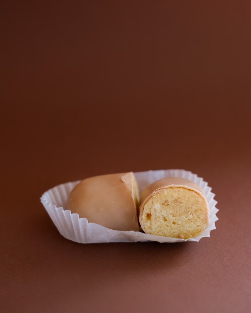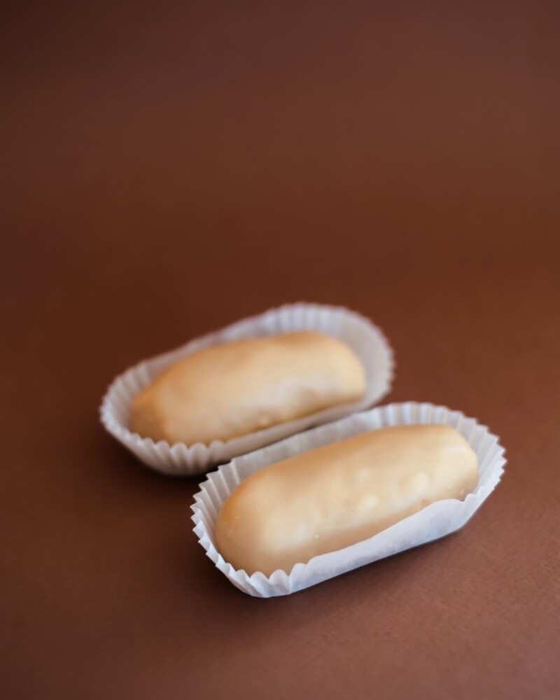 Мука пшеничная в/с, миндаль мелкоструганный, яйцо куриное, шоколад белый 28% (сахар, какао-масло, цельное сухое молоко, эмульгатор (соевый лецитин), натуральная ваниль) сахар, какао-масло, масло сладкосливочное несоленое 82,5% (сливки пастеризованные), коньяк, разрыхлитель теста (пшеничный крахмал, разрыхлитель Е500ii, регулятор кислотности Е450ii), соль пищевая морская.