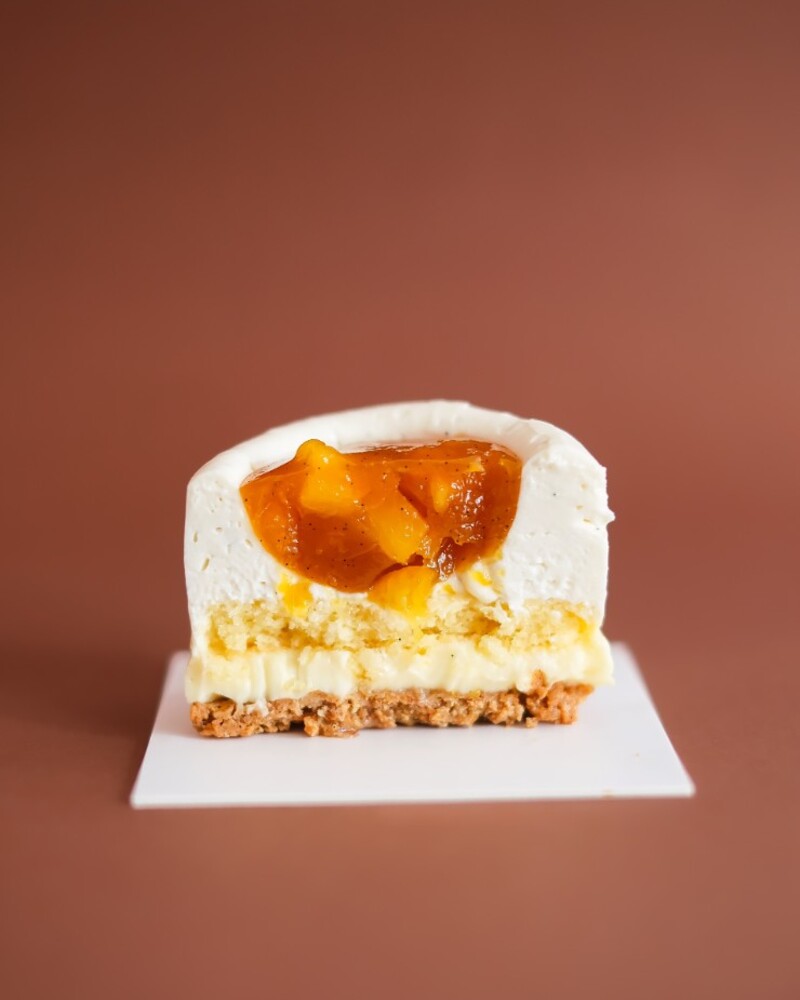 Ананас свежий, кокосовая стружка, мука миндальная, мука пшеничная в/с, масло сладкосливочное несоленое 82,5% (сливки пастеризованные), сливки из коровьего молока 33%, шоколад белый, сахар, сахар тростниковый, яйцо куриное, орех фундук, пюре из лайма, пюре из манго, пюре из маракуйи, пектин NH, желатин, ликер Малибу, цедра лимона, сок лайма, бобы тонка, крошка вафельная, соль морская.